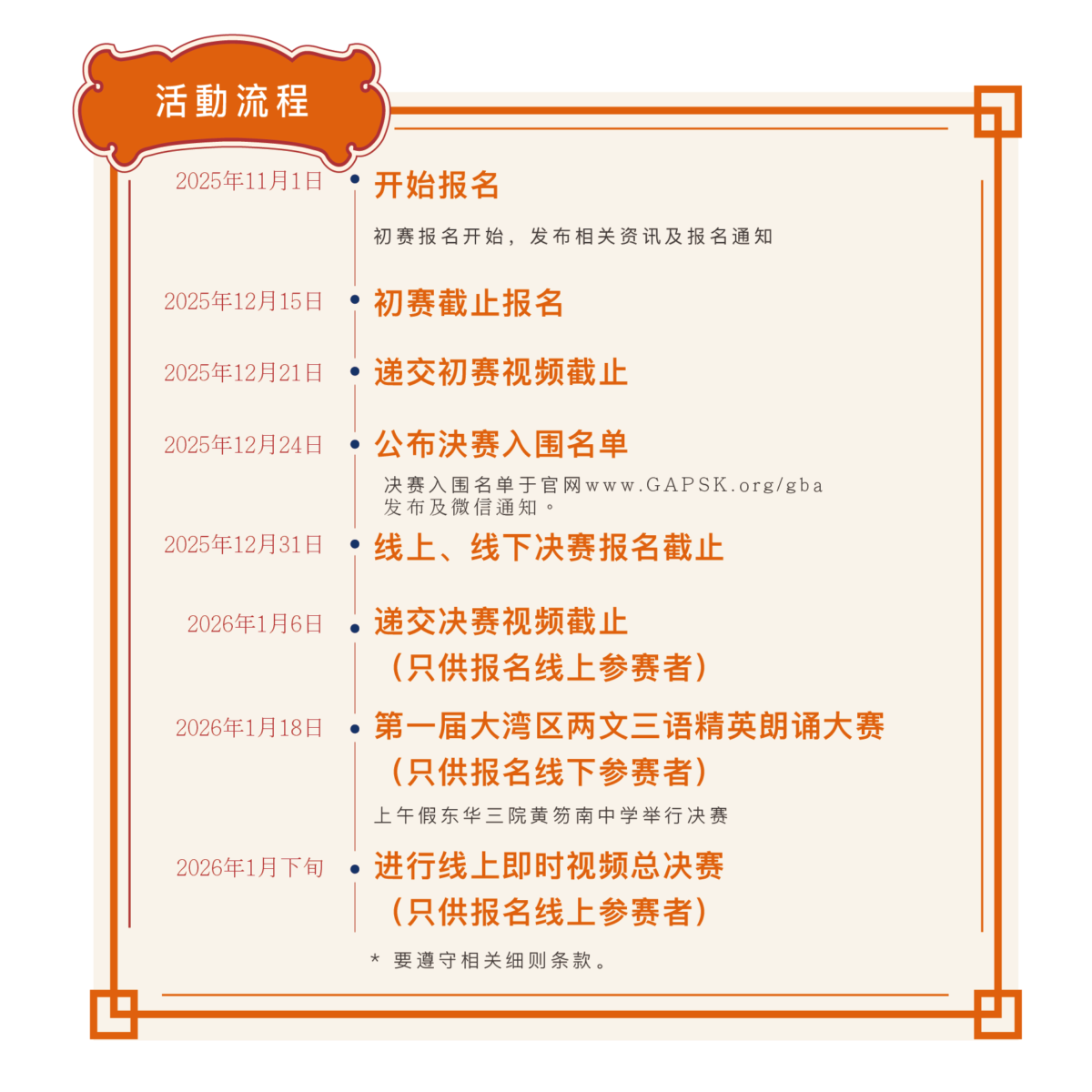 - 比赛类别:普通话、英文、粤语 (可同时参赛多项)